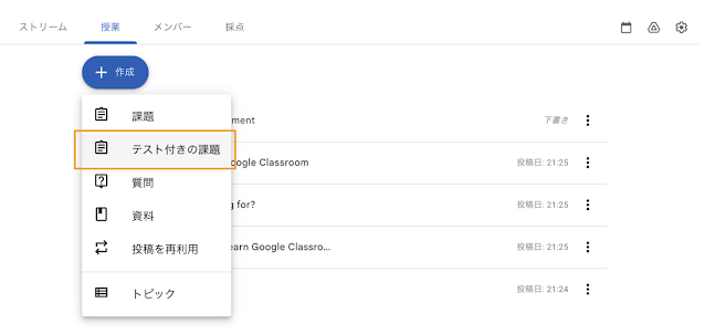 「テスト付きの課題」は現状 API 経由では作成できなかったため